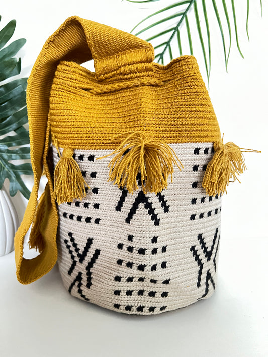 Yellow & White Retro Handwoven Crossbody Bag