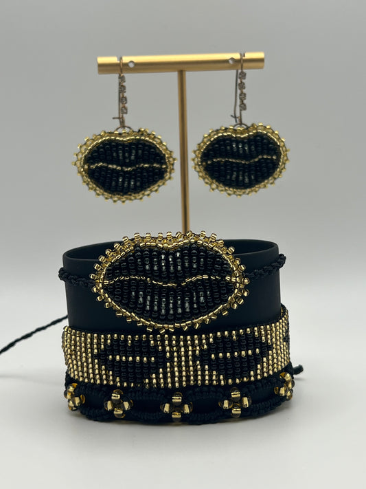 Punk Chic Lip Beaded Bracelet & Earring Set