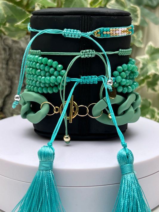 Teal & Gold Stylish Boho Chic Stackable Bracelet Set