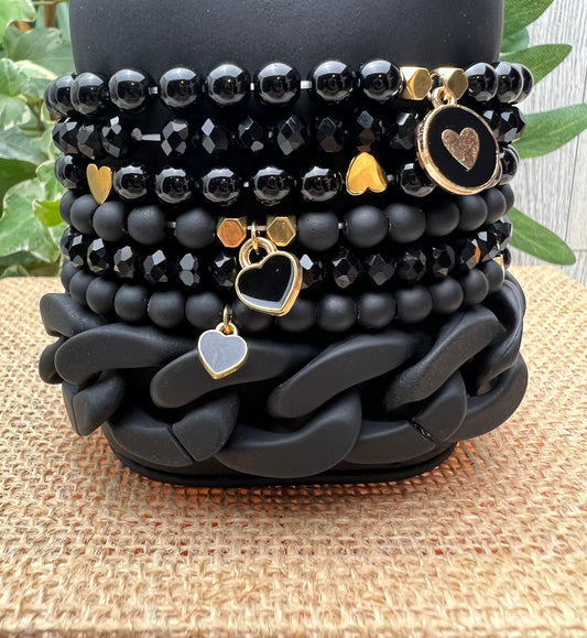 Black & Gold Charm Bracelet Set