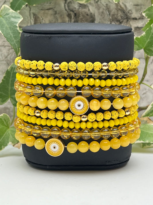 Yellow Evil Eye Bead Bracelet Set