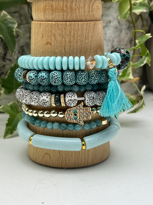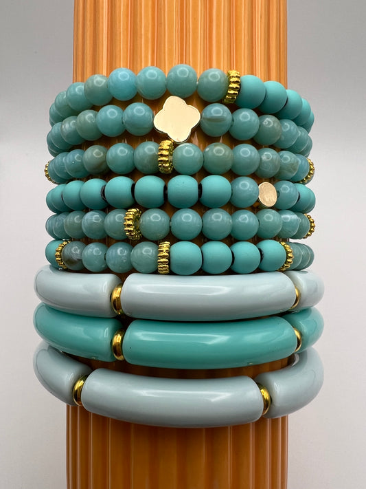 Teal Evil Eye Trendy Stacked Bracelet Set