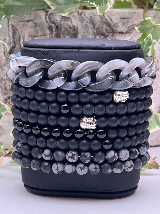 Black & Gray Buddha Bracelet Set