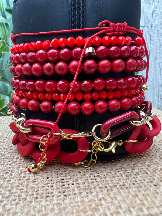 Red Trendy Beaded Bracelet Set