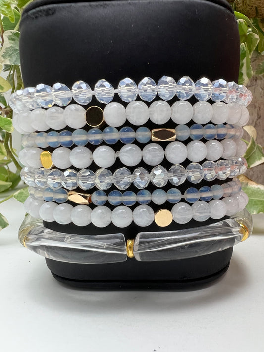 Stylish White & Gold Stacked Bracelet Set