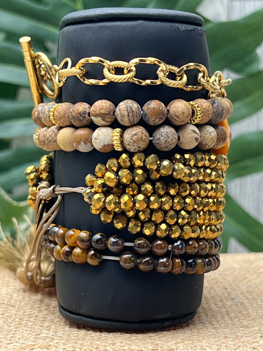 Brown & Gold Stacked Bracelet Set